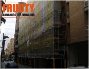 Andamio de marcos, con paso peatonal de andamio multidireecional en via pública de Lorca.