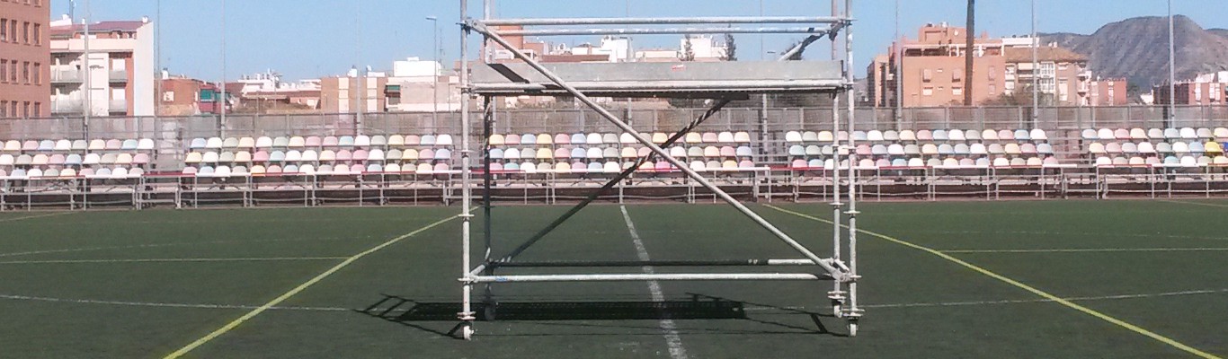 Andamio con ruedas en campo futbol