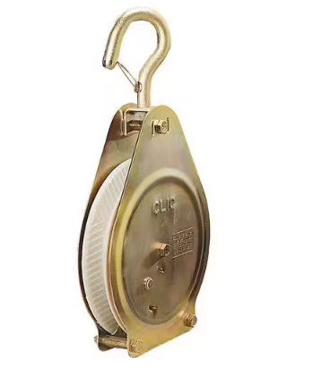 Polea con parada automática y un acabado galvanizado bicromado resistente a la corrosión. Cuenta con un trinquete que bloquea automáticamente la carga cuando no se ejerce tracción sobre la cuerda, y una nueva tracción desbloquea el trinquete y permite bajar la carga.